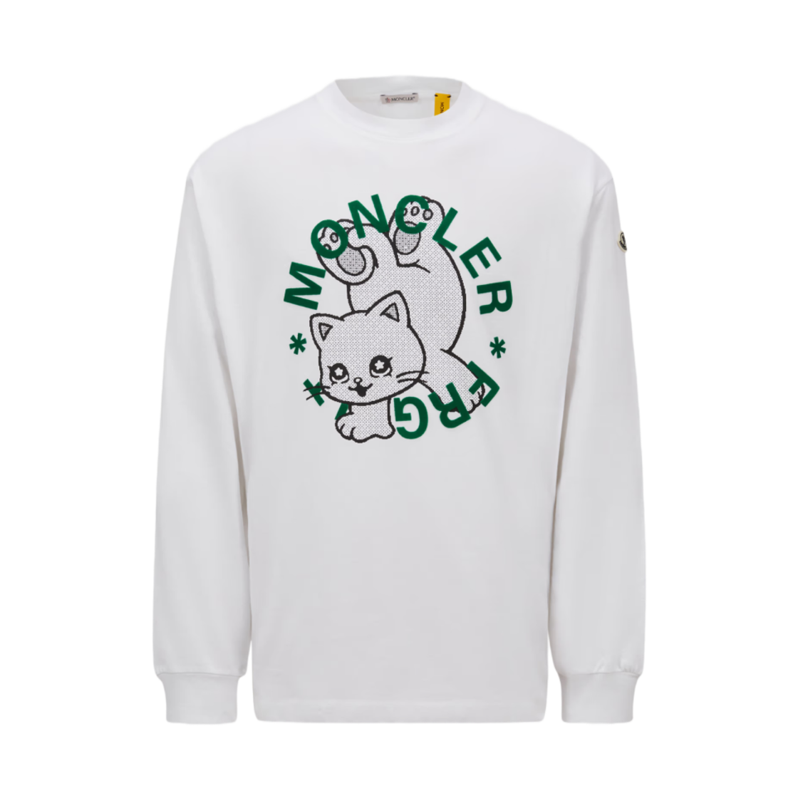 몽클레르 x 프라그먼트 카툰 로고 롱슬리브 티셔츠 화이트 - 25SS
