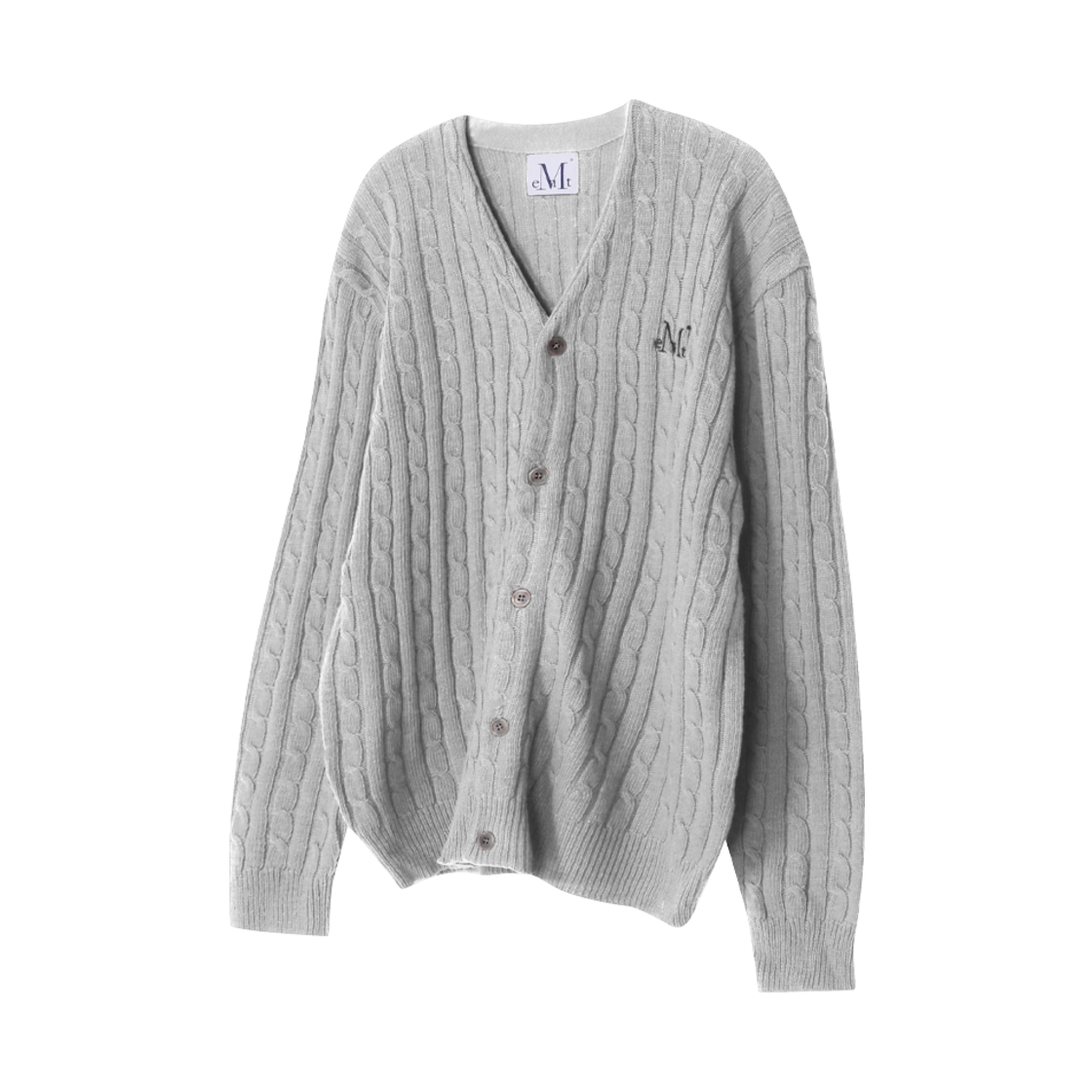 무센트 헴슬리 브이넥 케이블 니트 가디건 라이트 그레이