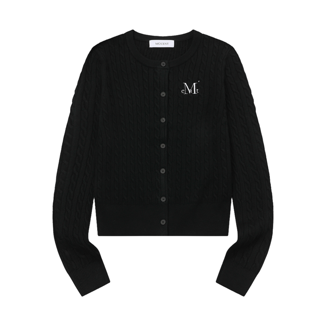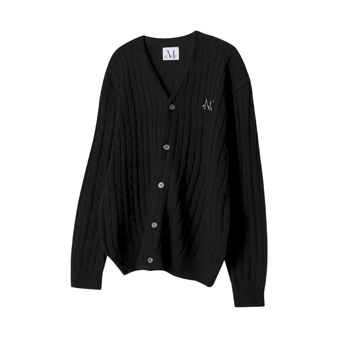 무센트 헴슬리 브이넥 케이블 니트 가디건 블랙