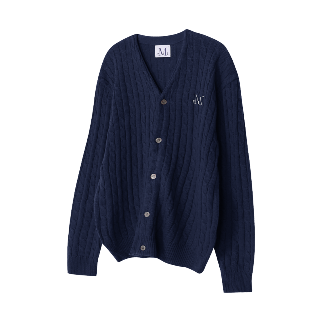 무센트 헴슬리 브이넥 케이블 니트 가디건 네이비