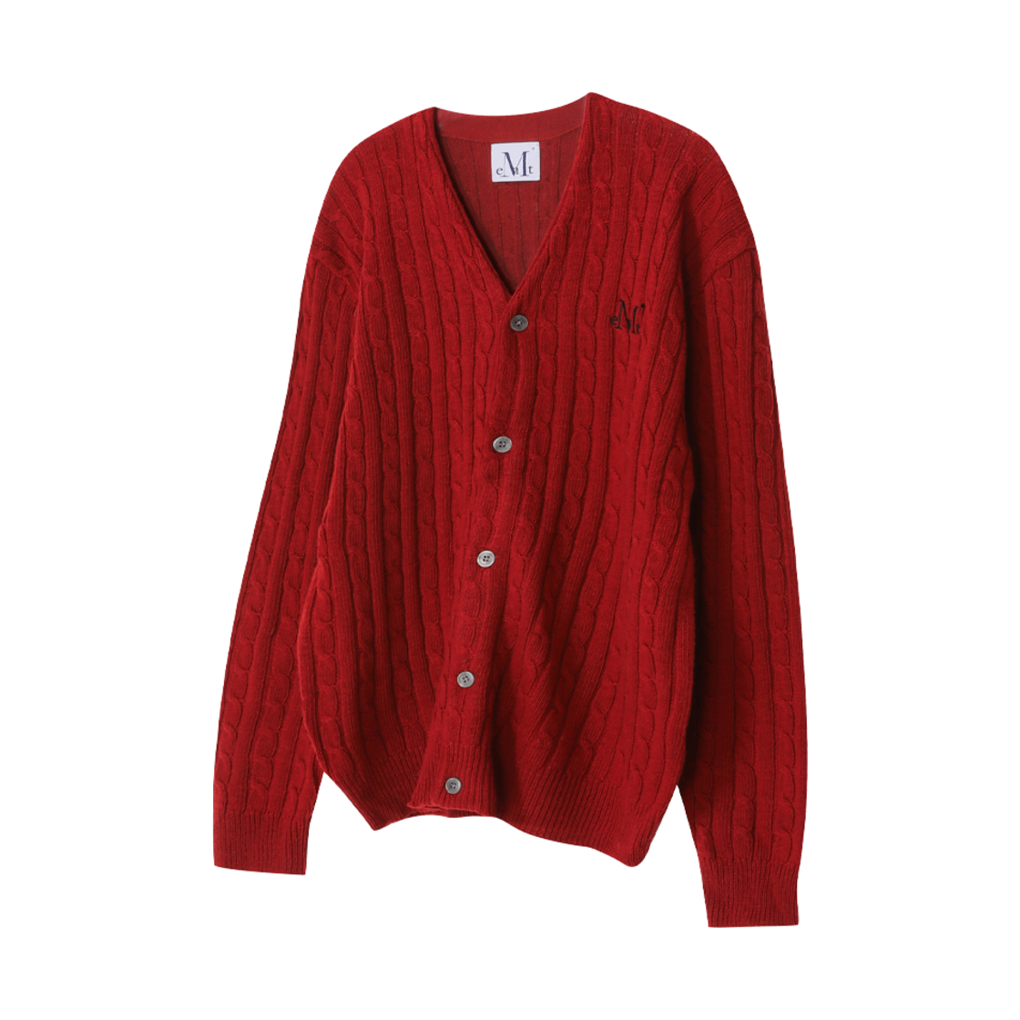무센트 헴슬리 브이넥 케이블 니트 가디건 레드