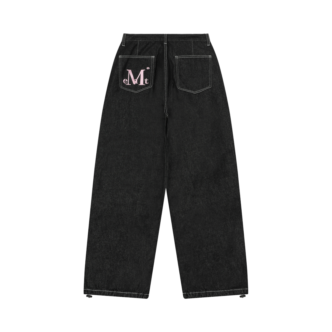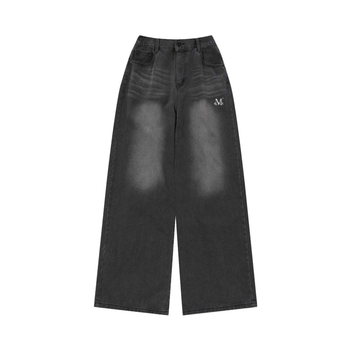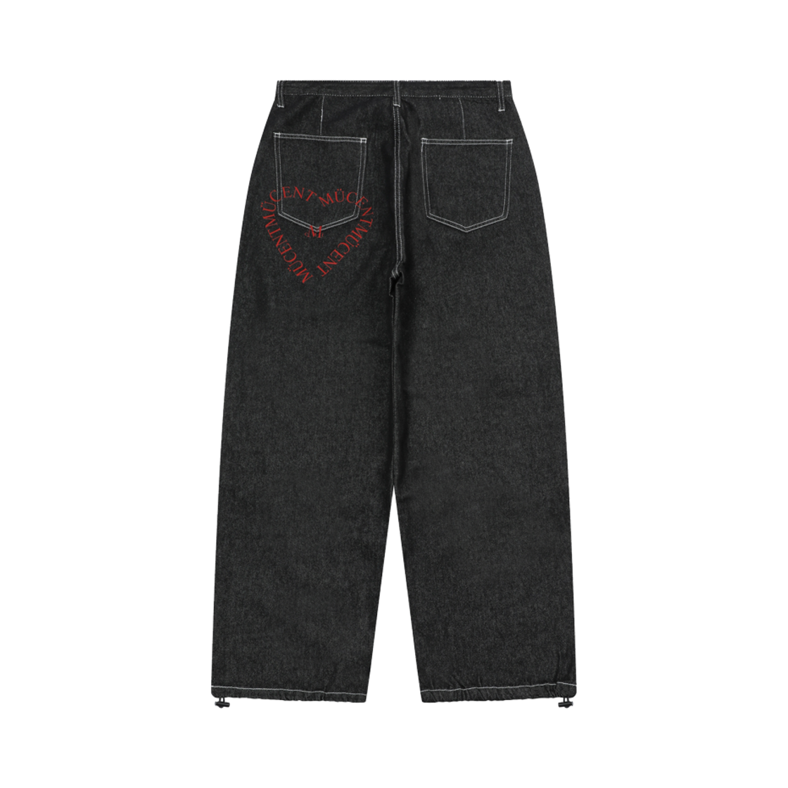 무센트 시그니처 하트 레터링 백 로고 데님 팬츠 블랙