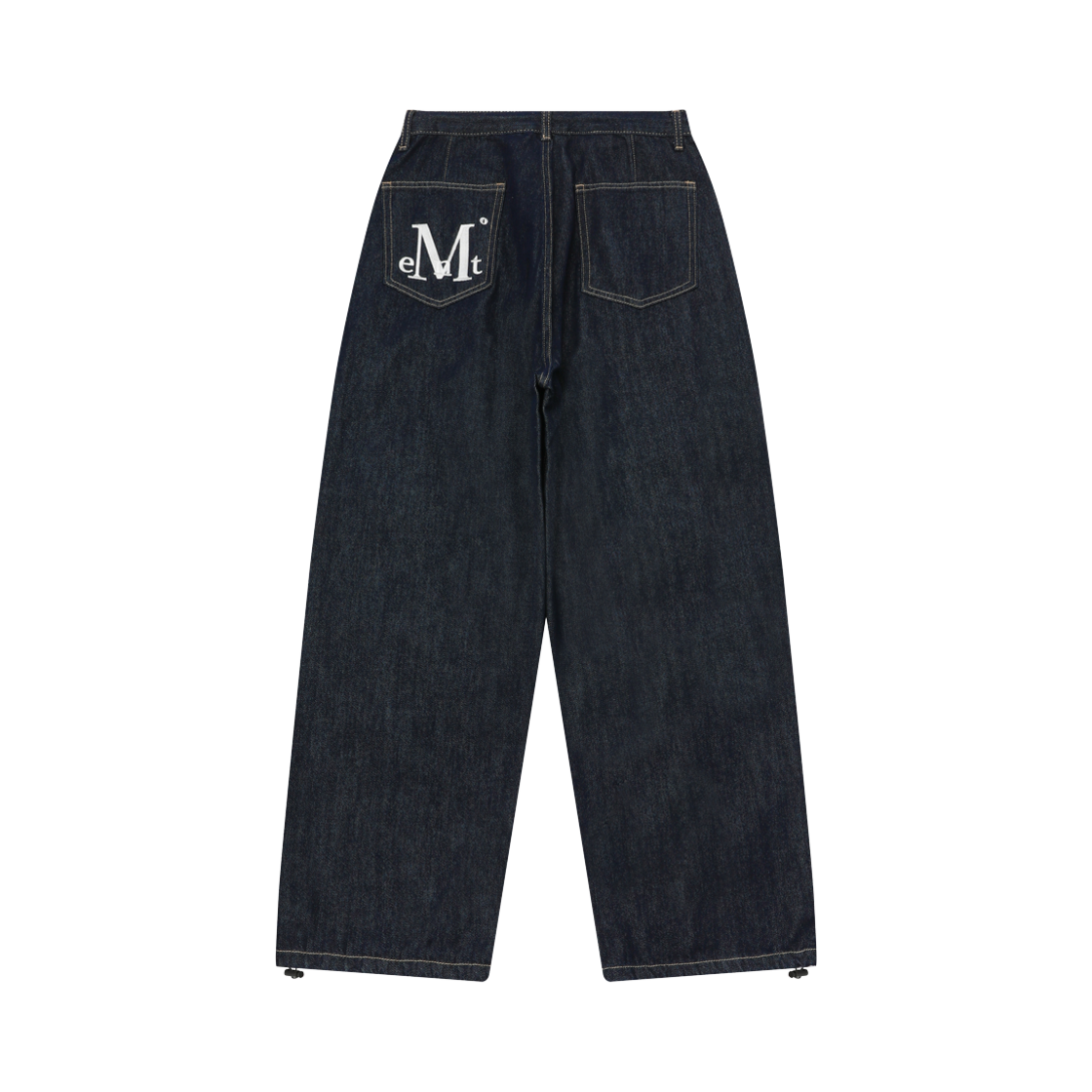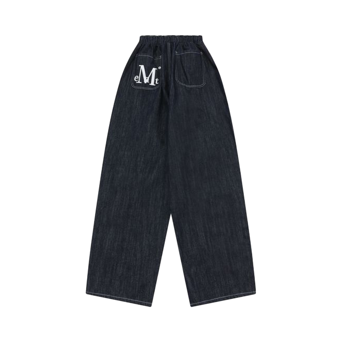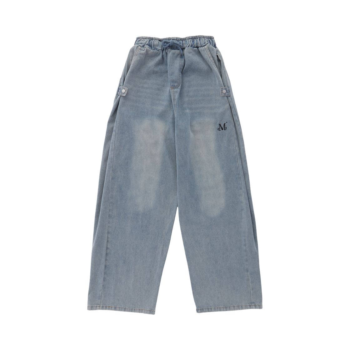 무센트 시그니처 백 72 레터링 와이드 데님 밴딩 팬츠 남녀공용 미드 데님