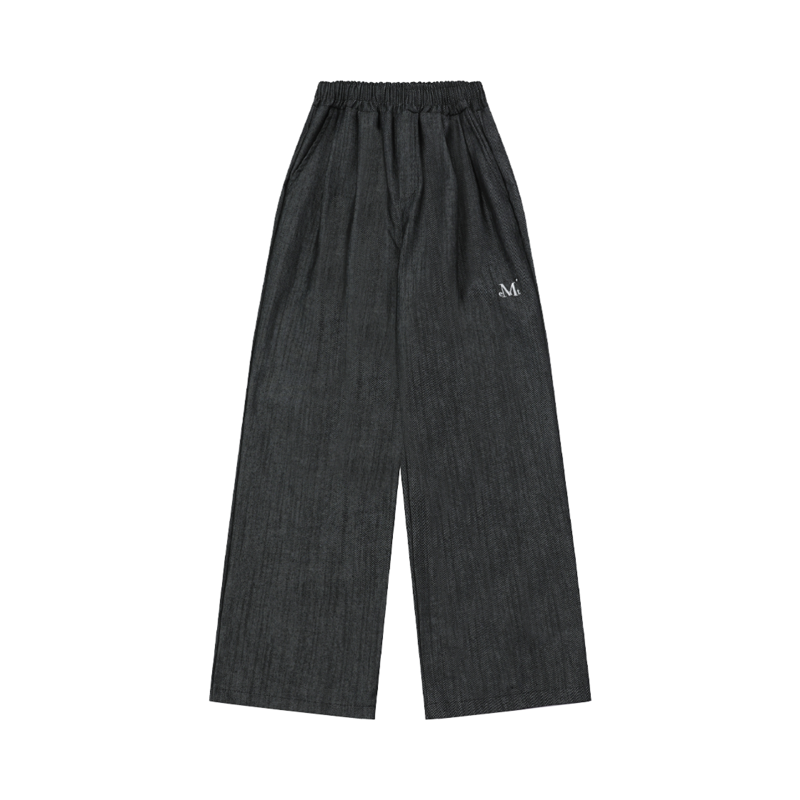 무센트 웨런 핀턱 와이드 데님 밴딩 팬츠 남녀공용 블랙