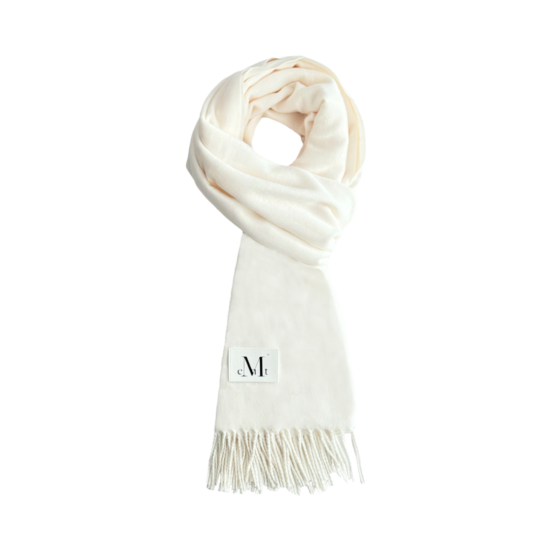 무센트 시그니처 머플러 화이트 레더 패치 롱 아이보리