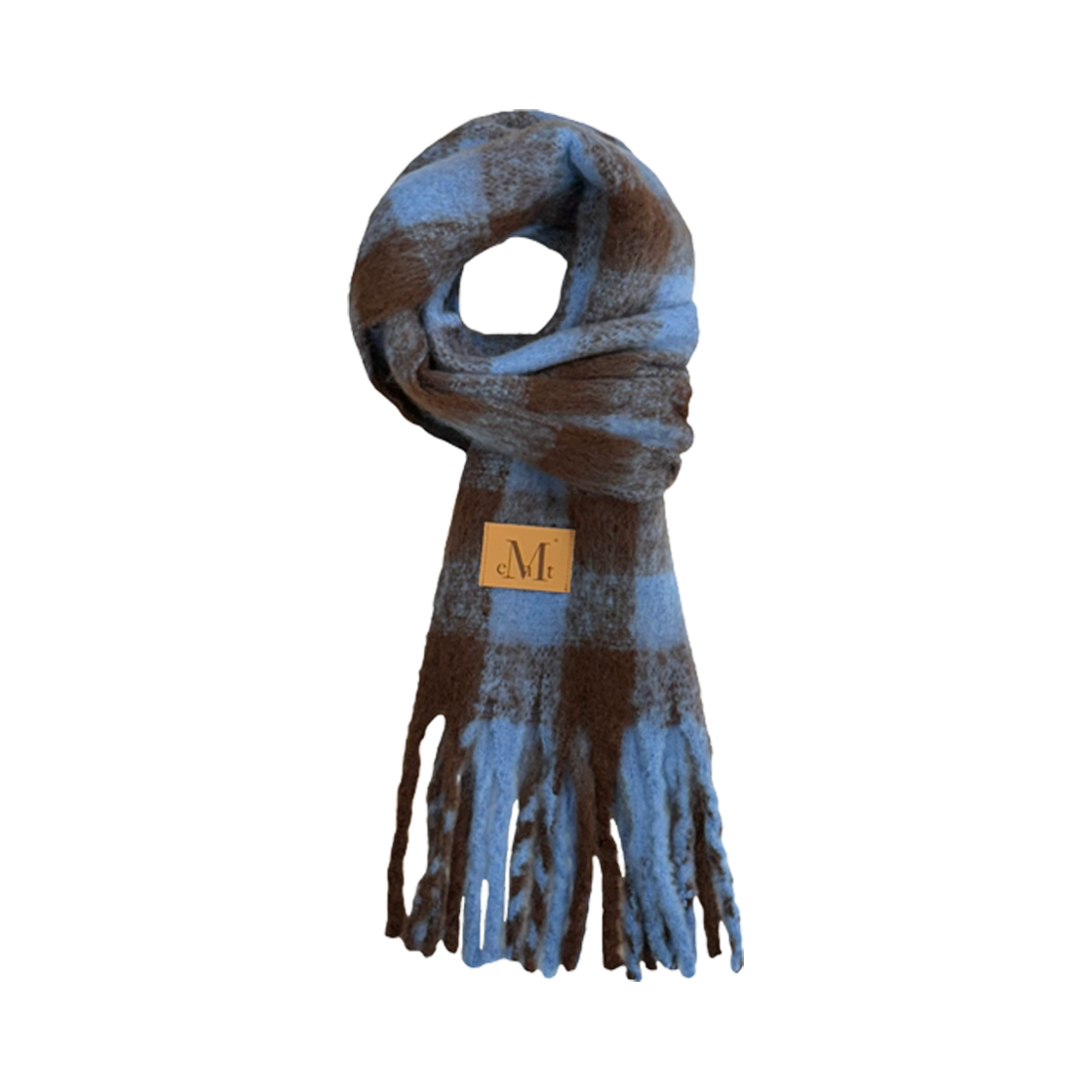 무센트 시그니처 머플러 브라운 레더 패치 미디움 블루 체크