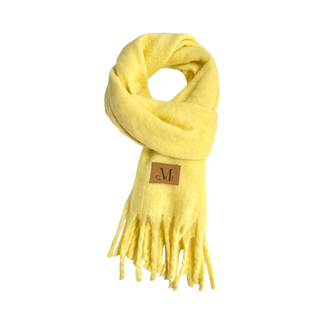 무센트 시그니처 머플러 브라운 레더 패치 롱 버터 옐로우