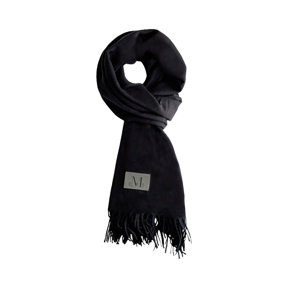 무센트 시그니처 머플러 차콜 레더 패치 롱 블랙