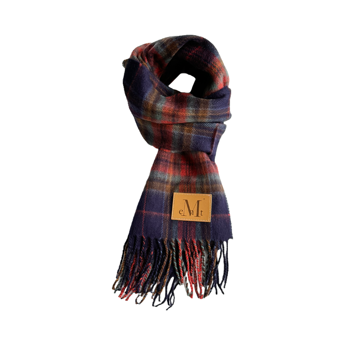 무센트 시그니처 머플러 브라운 레더 패치 숏 네이비 잔체크