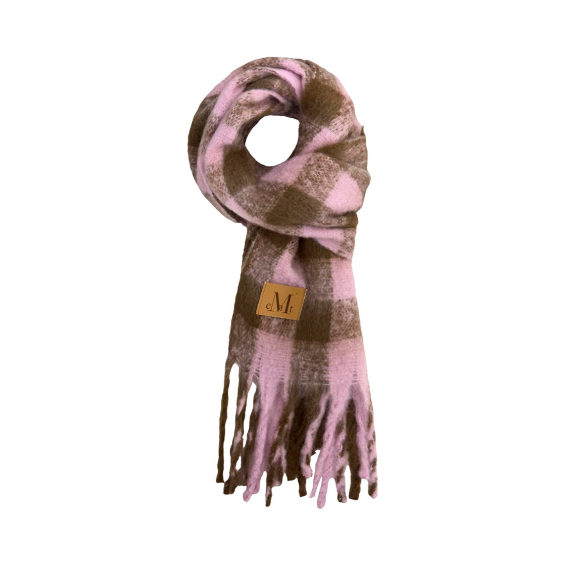 무센트 시그니처 머플러 브라운 레더 패치 미디움 핑크 체크