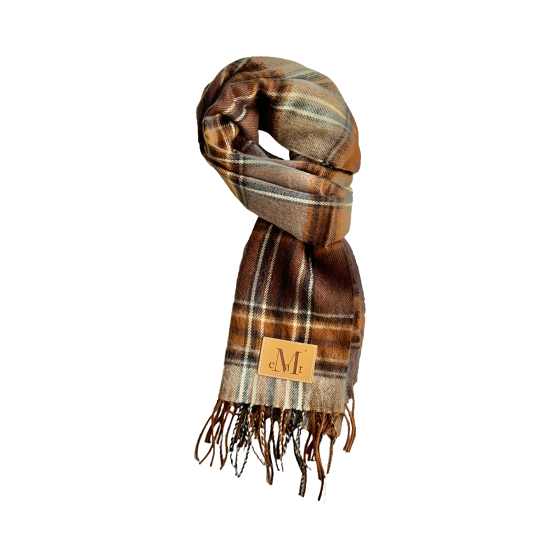 무센트 시그니처 머플러 브라운 레더 패치 롱 소라 체크