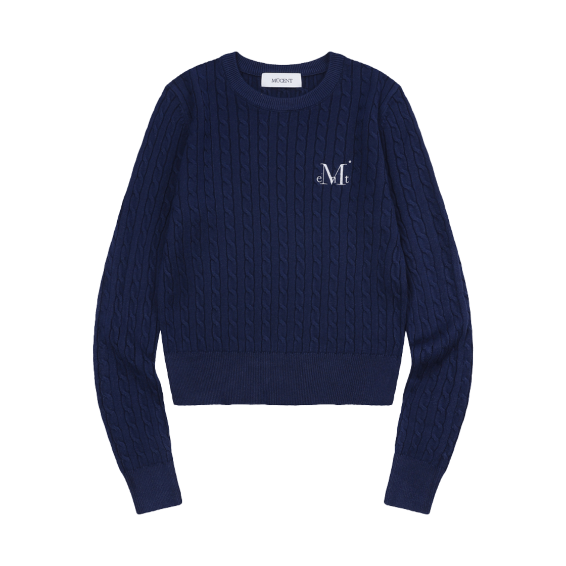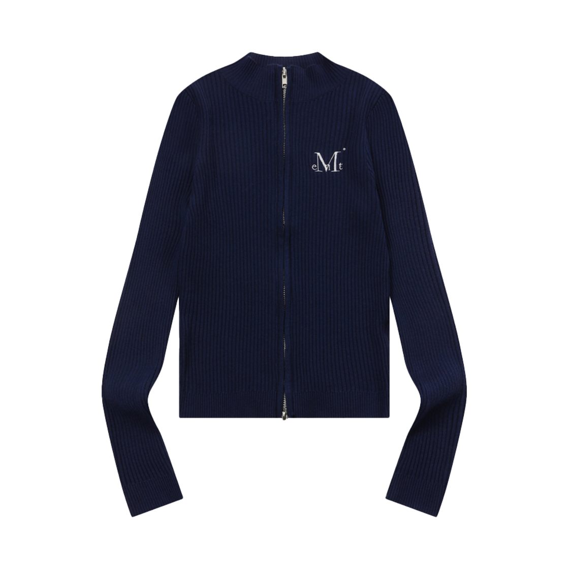 무센트 오키드 골지 크롭 니트 집업 네이비