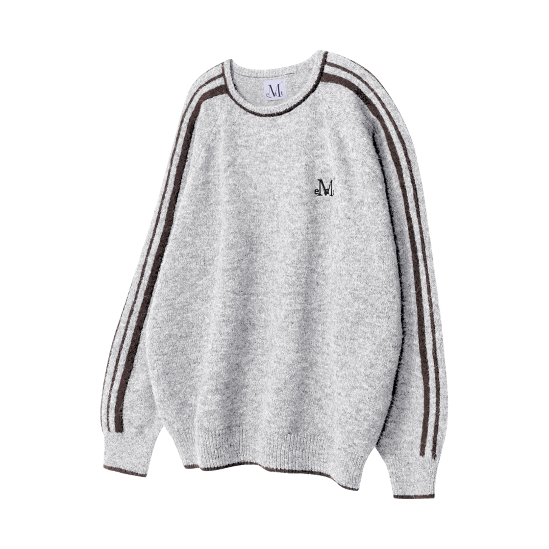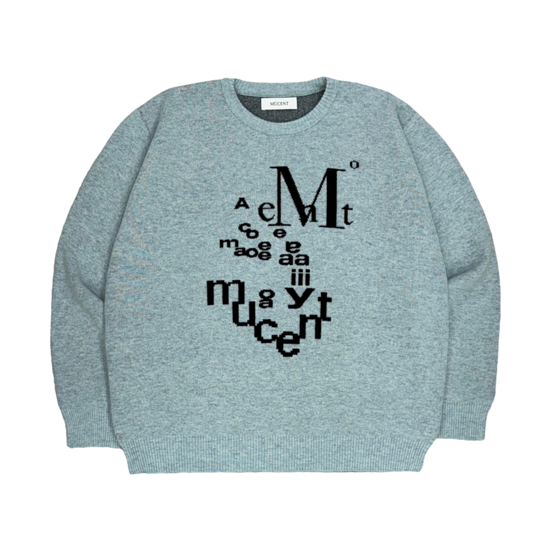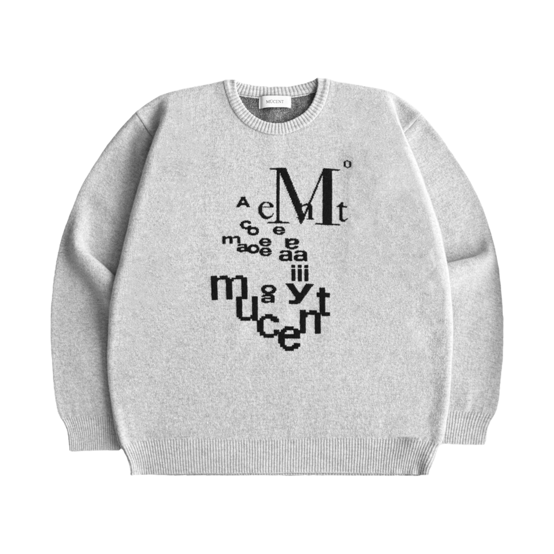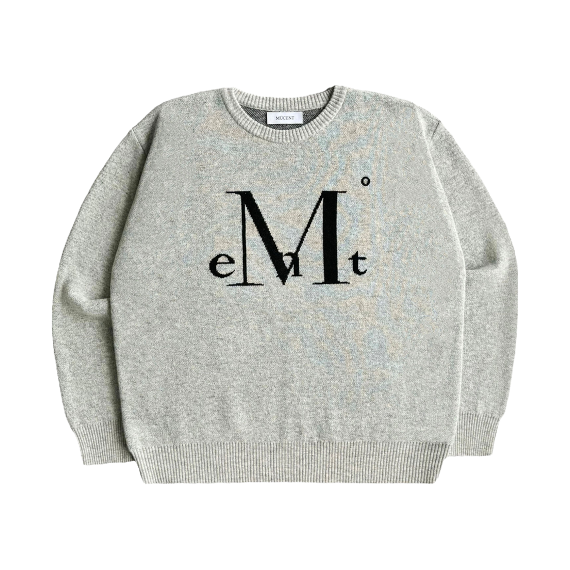 무센트 뫼비우스 레터링 로고 램스 울 자카드 니트 라이트 그레이