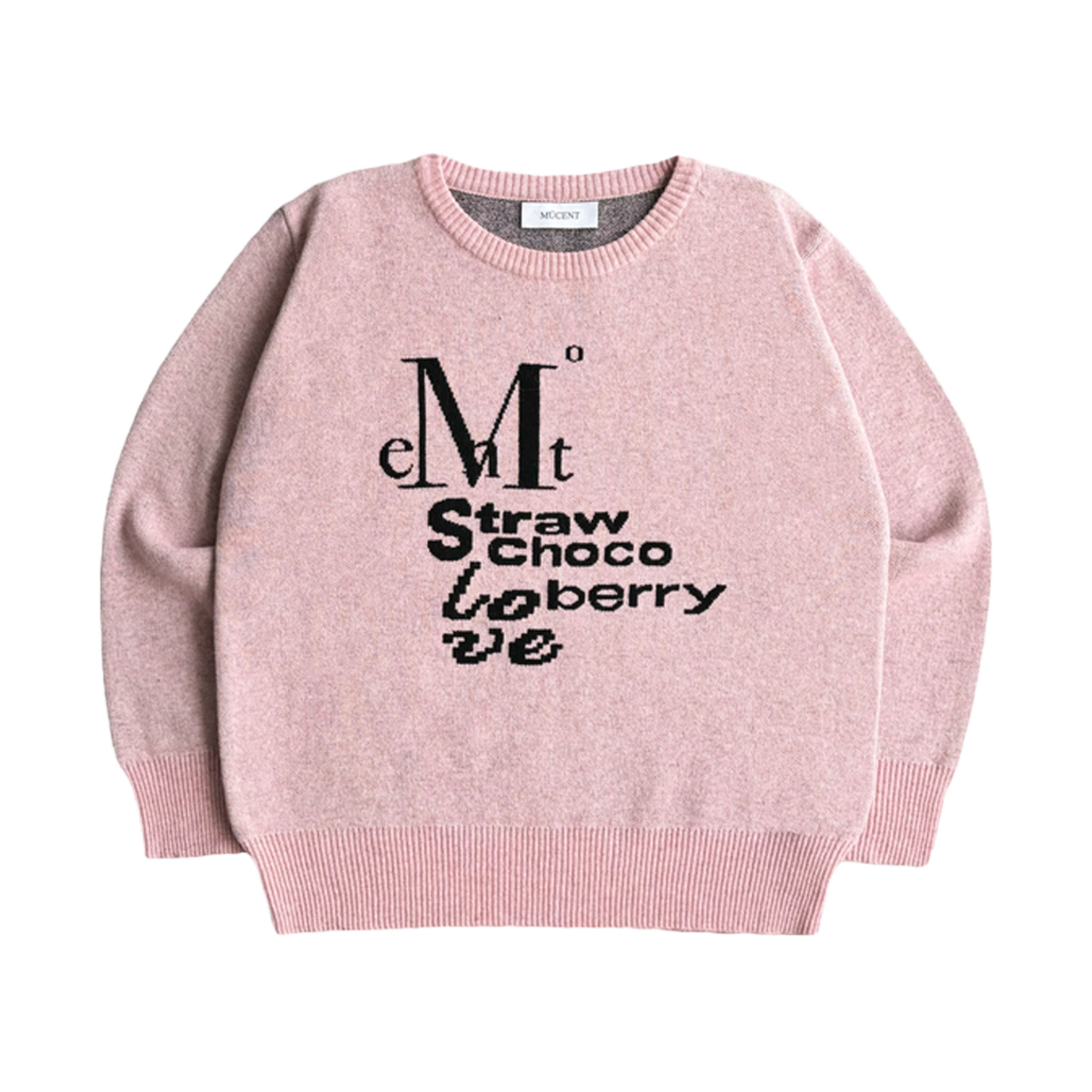 무센트 서드베리 빅 로고 레터링 자카드 니트 핑크