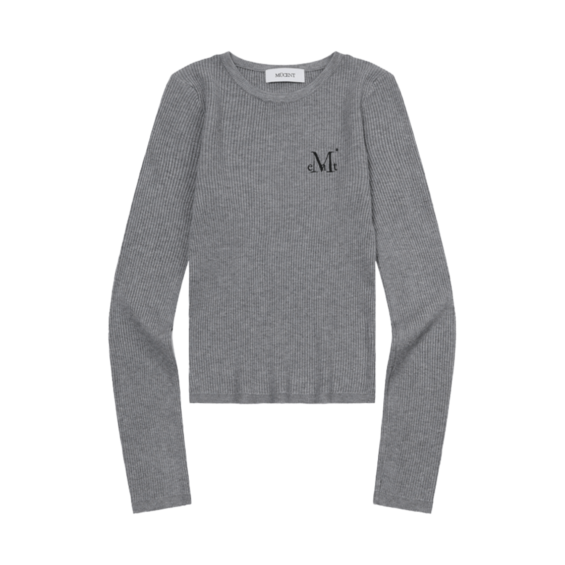 무센트 그리브 라운드넥 크롭 골지 니트 그레이