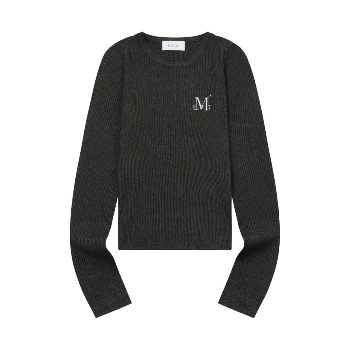 무센트 그리브 라운드넥 크롭 골지 니트 차콜