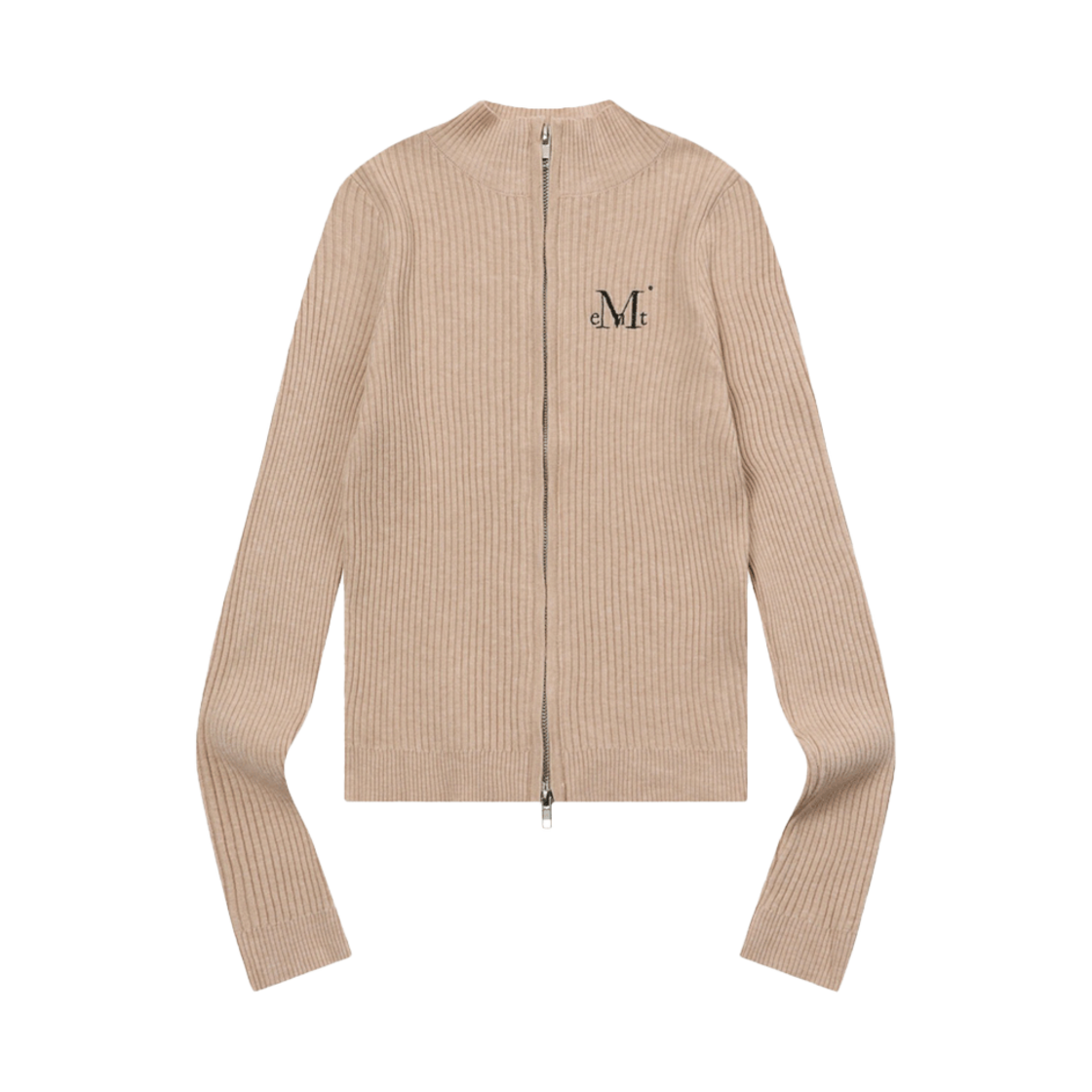 무센트 오키드 골지 크롭 니트 집업 베이지