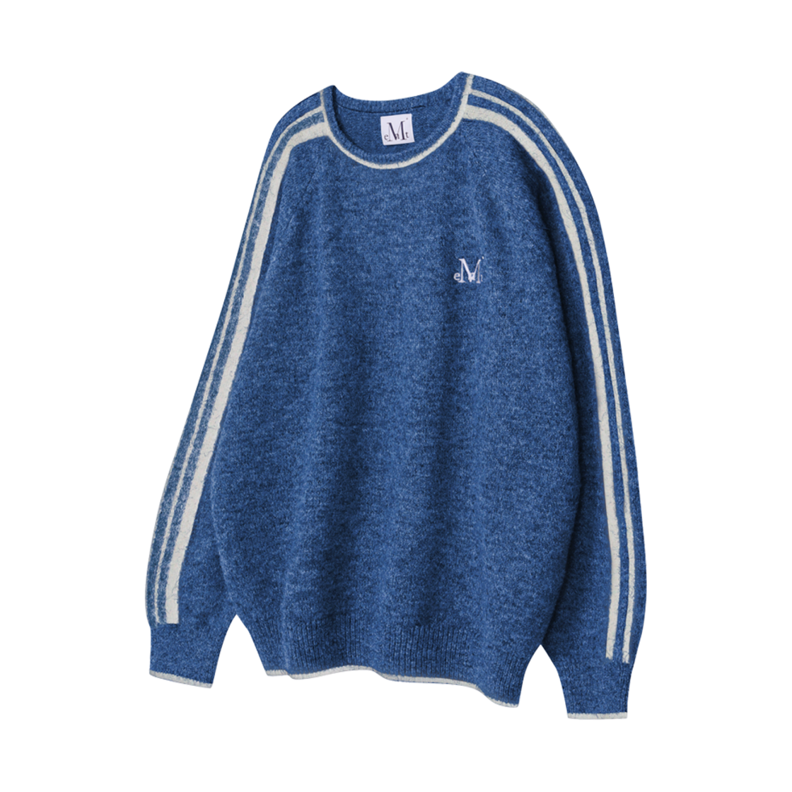 무센트 헤르네 트랙 라인 레글런 루즈핏 니트 블루