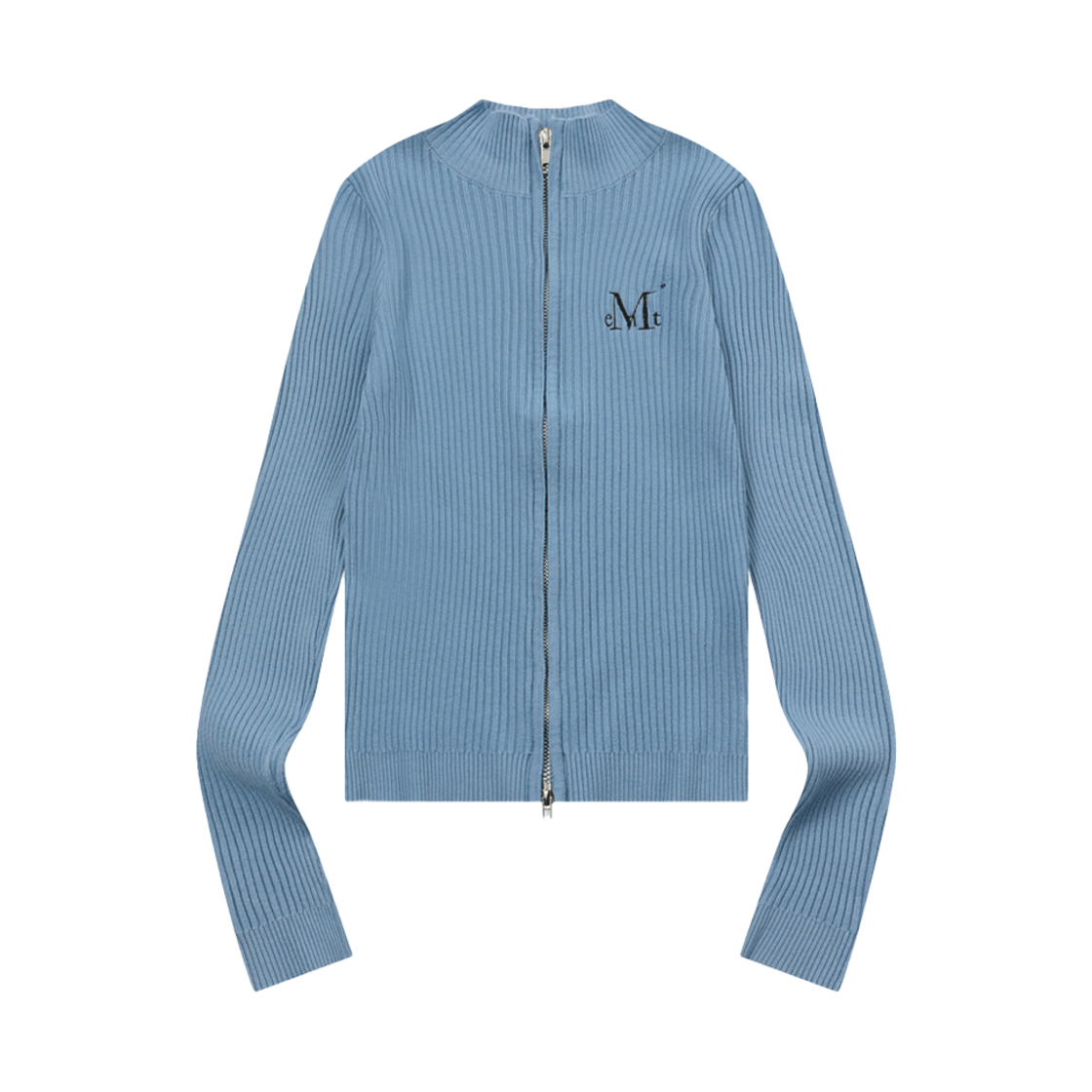 무센트 오키드 골지 크롭 니트 집업 스카이 블루