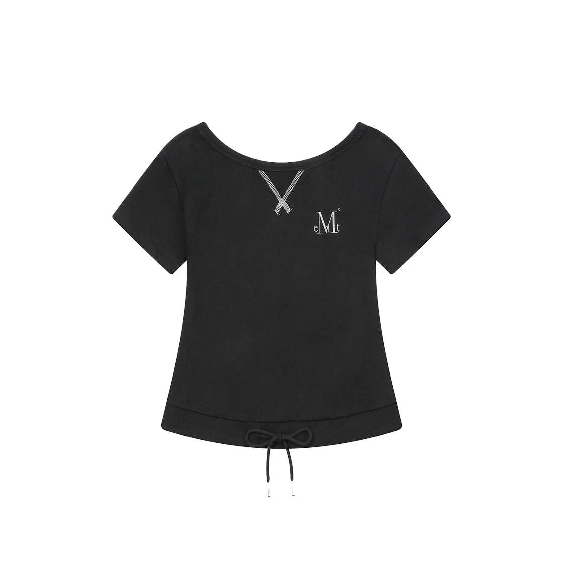 무센트 슬로프 후디 디테일 크롭 보트넥 반팔 티 블랙