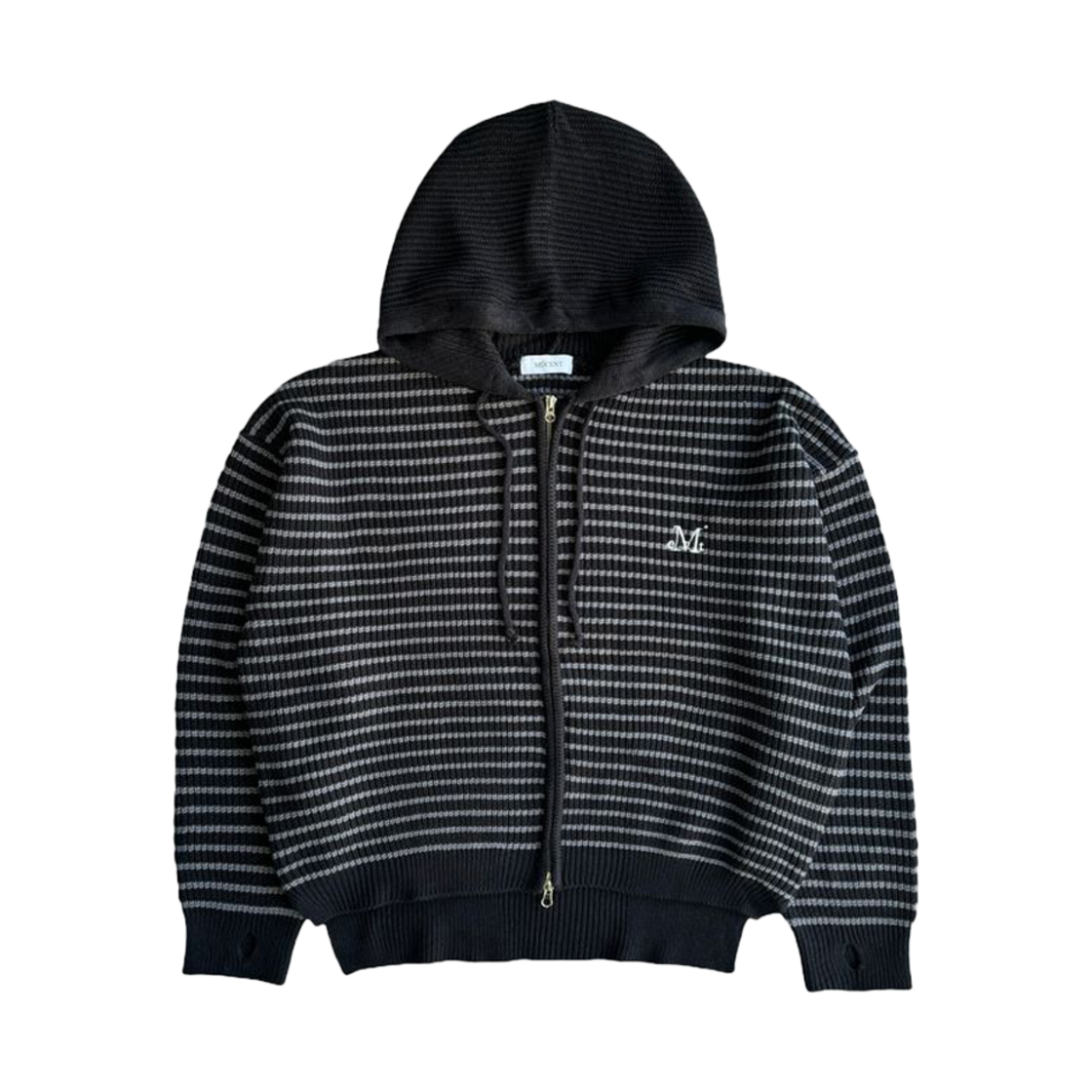 무센트 메이 오버핏 스트라이프 핸드워머 니트 후드 집업 블랙