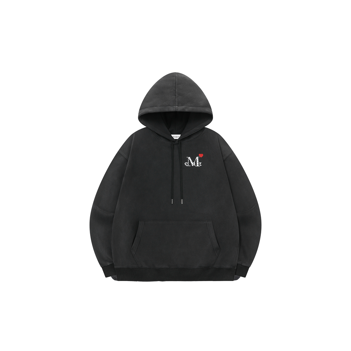 무센트 러브릿츠 미니 하트 로고 후드 티 남녀공용 (3컬러) 피그먼트 블랙