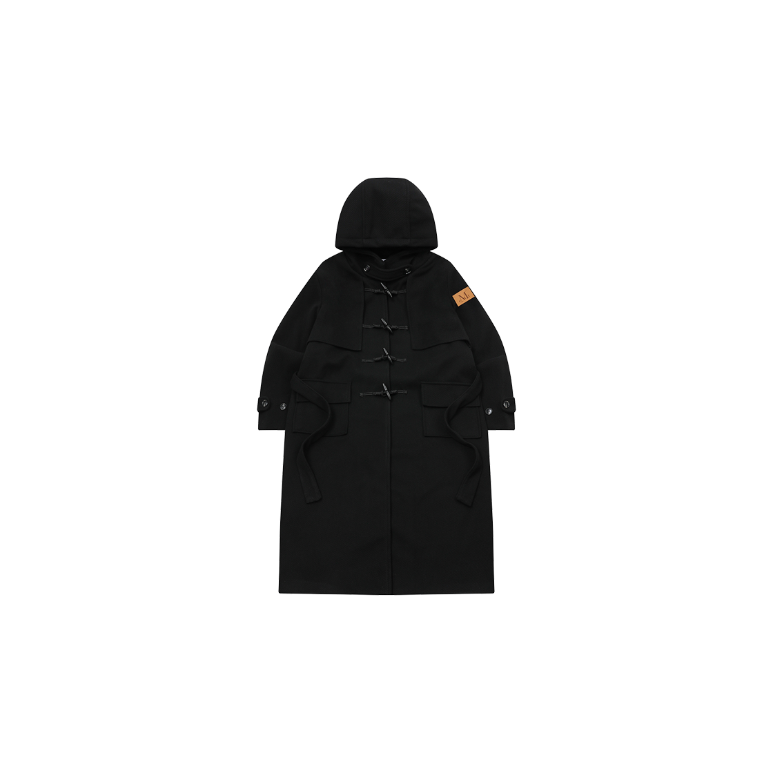 무센트 [핀뱃지 증정] 하비츠 플랩 후드 더플 롱 코트 남녀공용 (2컬러) 블랙
