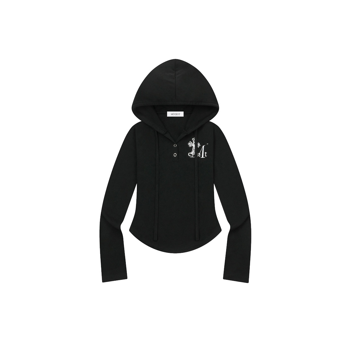 무센트 로번트 메탈 로고 볼레로 후드 집업 (2컬러) 블랙
