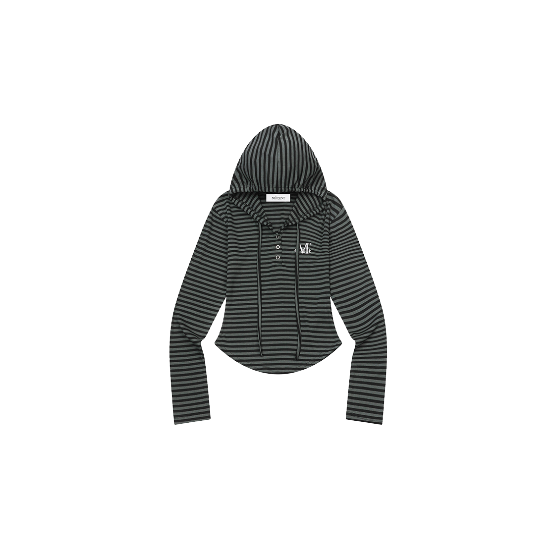 무센트 아스톤 스트라이프 슬림 후드 티 차콜 - 블랙