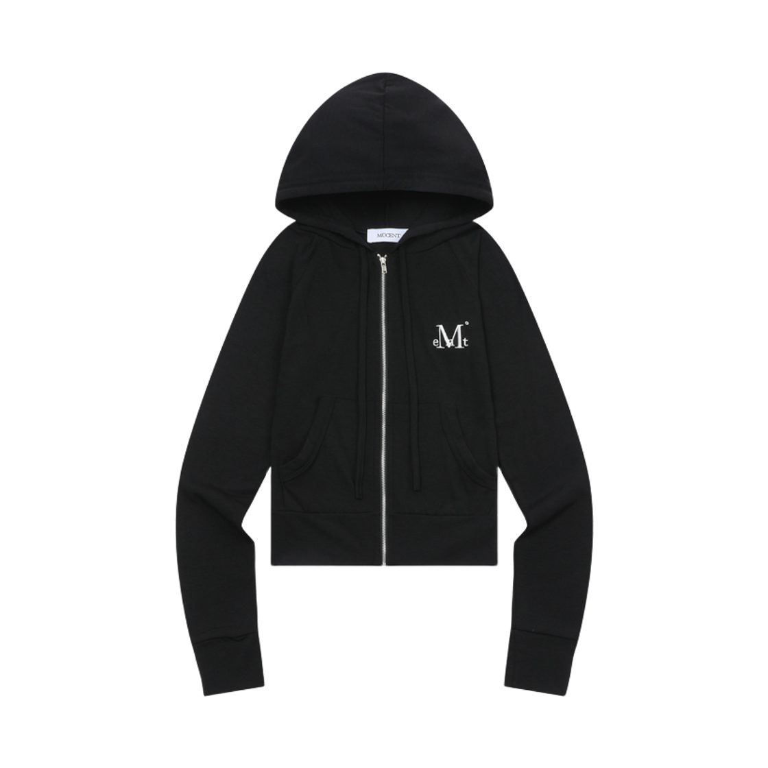 무센트 라잇업 슬림핏 크롭 후드 집업 블랙