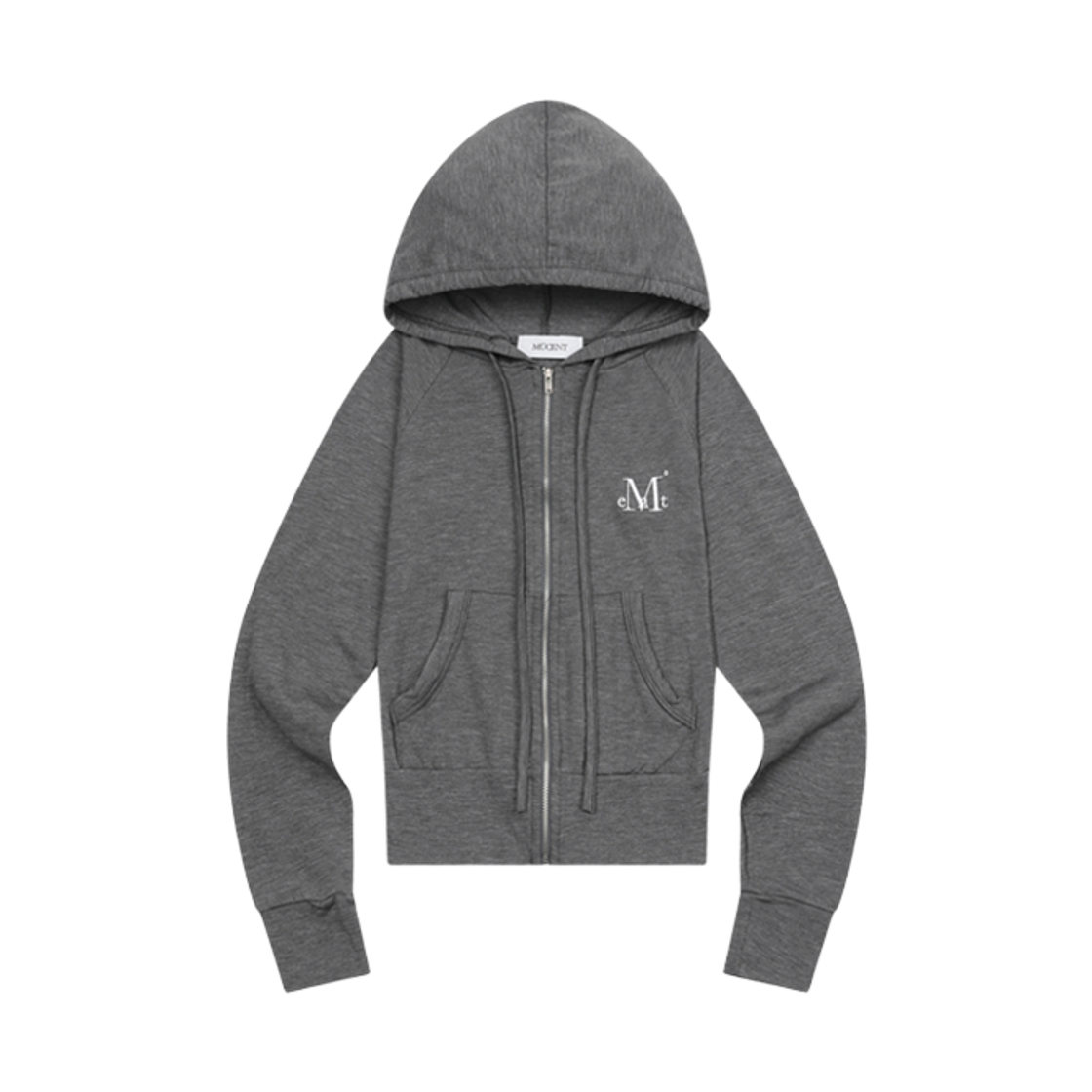 무센트 라잇업 슬림핏 크롭 후드 집업 그레이