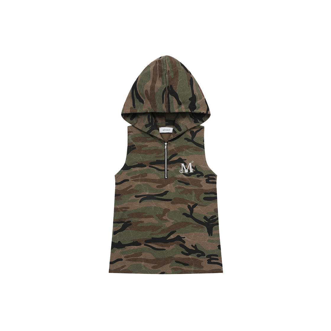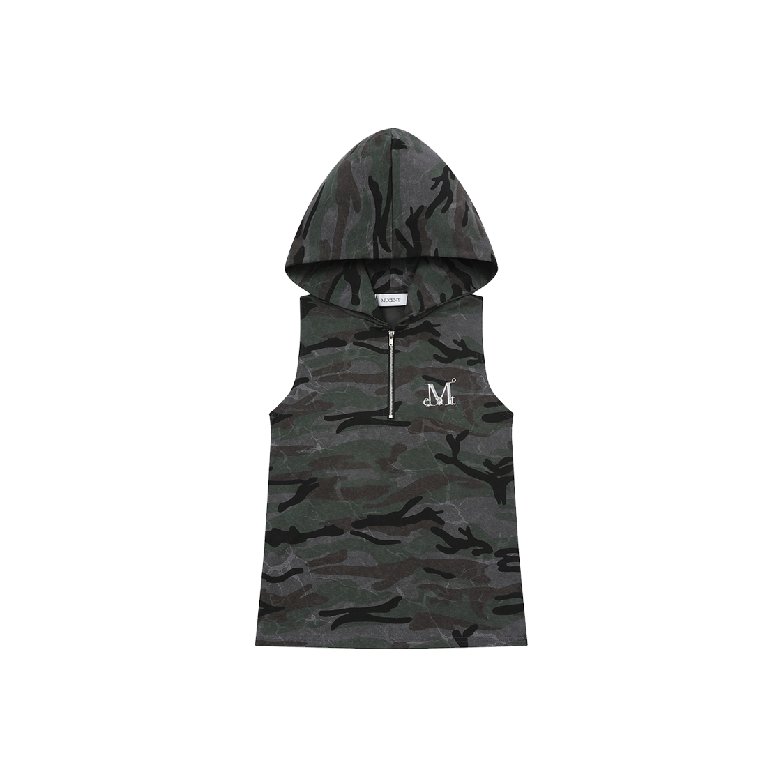 무센트 켈린 메탈 로고 카모 후드 슬리브리스 카키