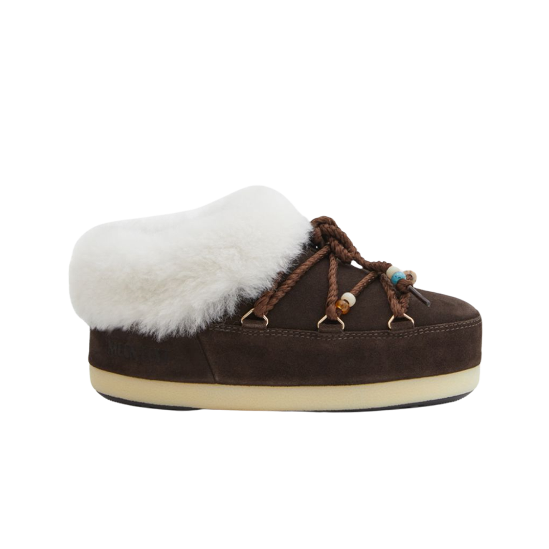 (W) 문부츠 스웨이드 비즈 뮬 다크 브라운 내츄럴