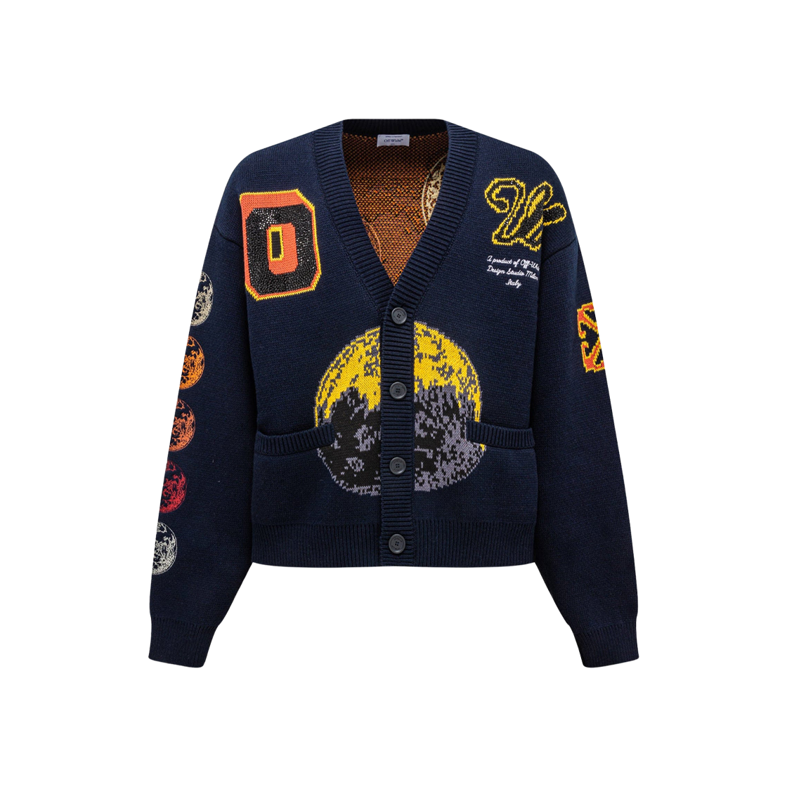 오프화이트 블루 문 페이즈 바시티 가디건 네이비