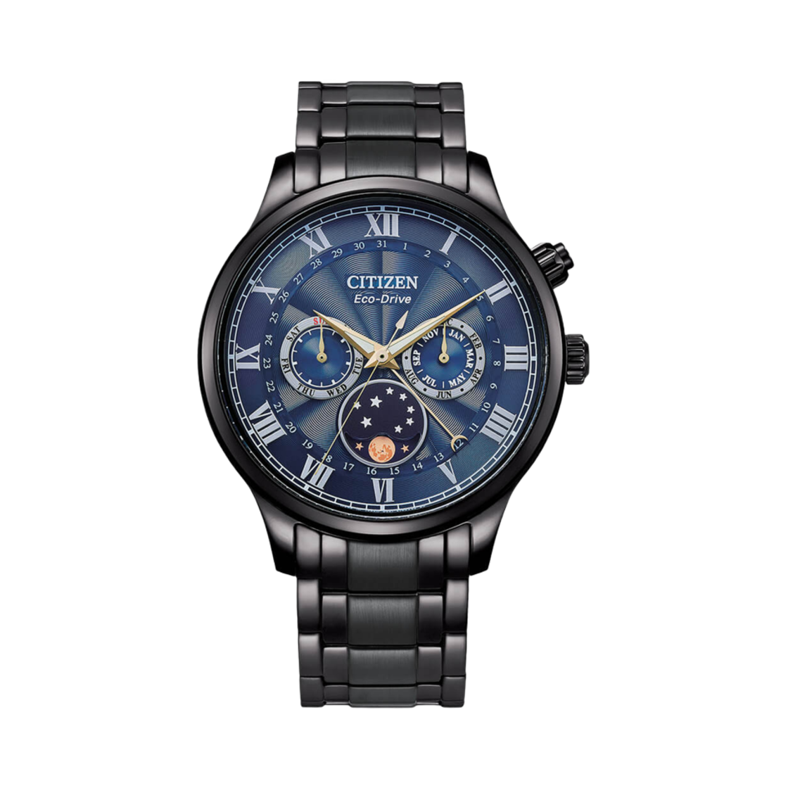 시티즌 문 페이즈 에코드라이브 42.2mm 스테인리스 스틸 블루 블랙 이온