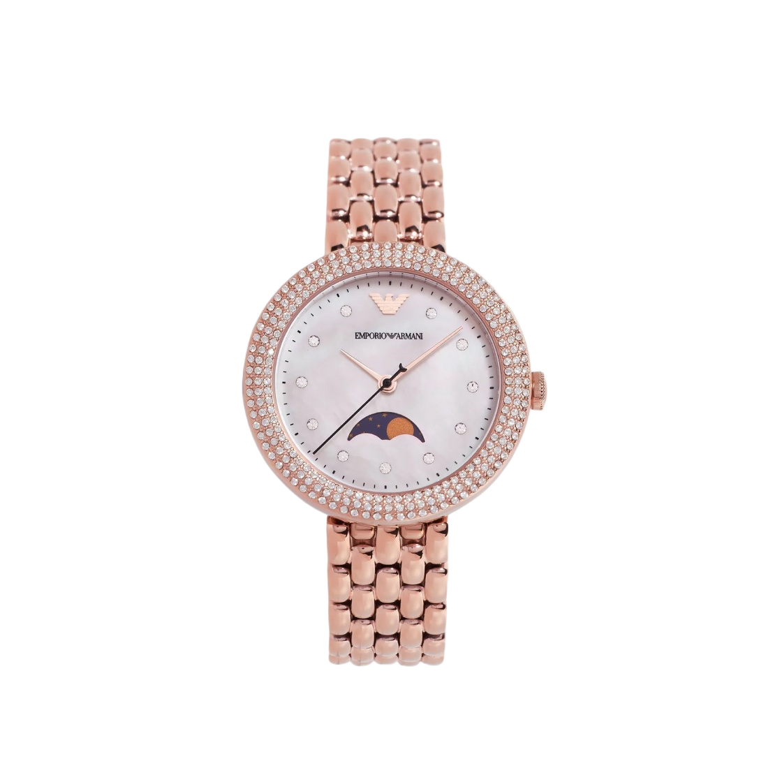 (W) 엠포리오 아르마니 문페이즈 멀티펑션 32mm 스테인리스 스틸 마더 오브 펄 화이트 로즈 골드