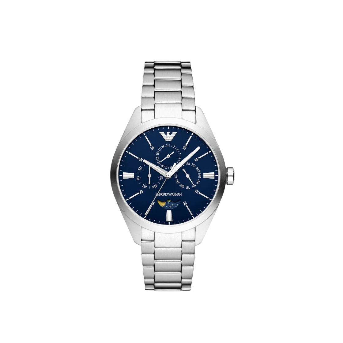엠포리오 아르마니 문페이즈 쓰리핸드 43mm 스테인리스 스틸 블루 실버