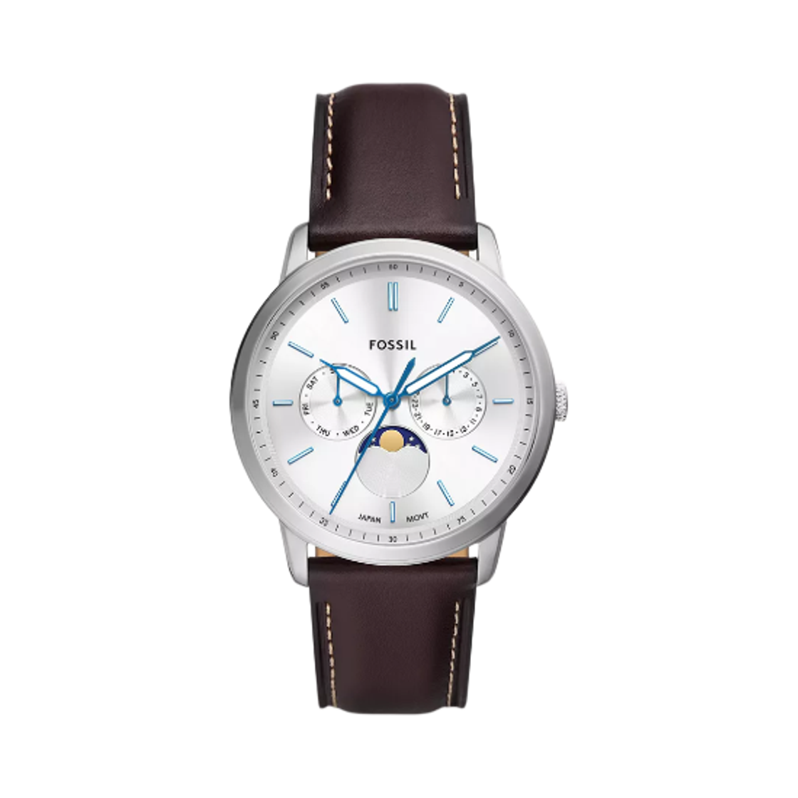 파슬 뉴트라 문페이즈 쿼츠 멀티펑션 42mm 레더 실버 브라운