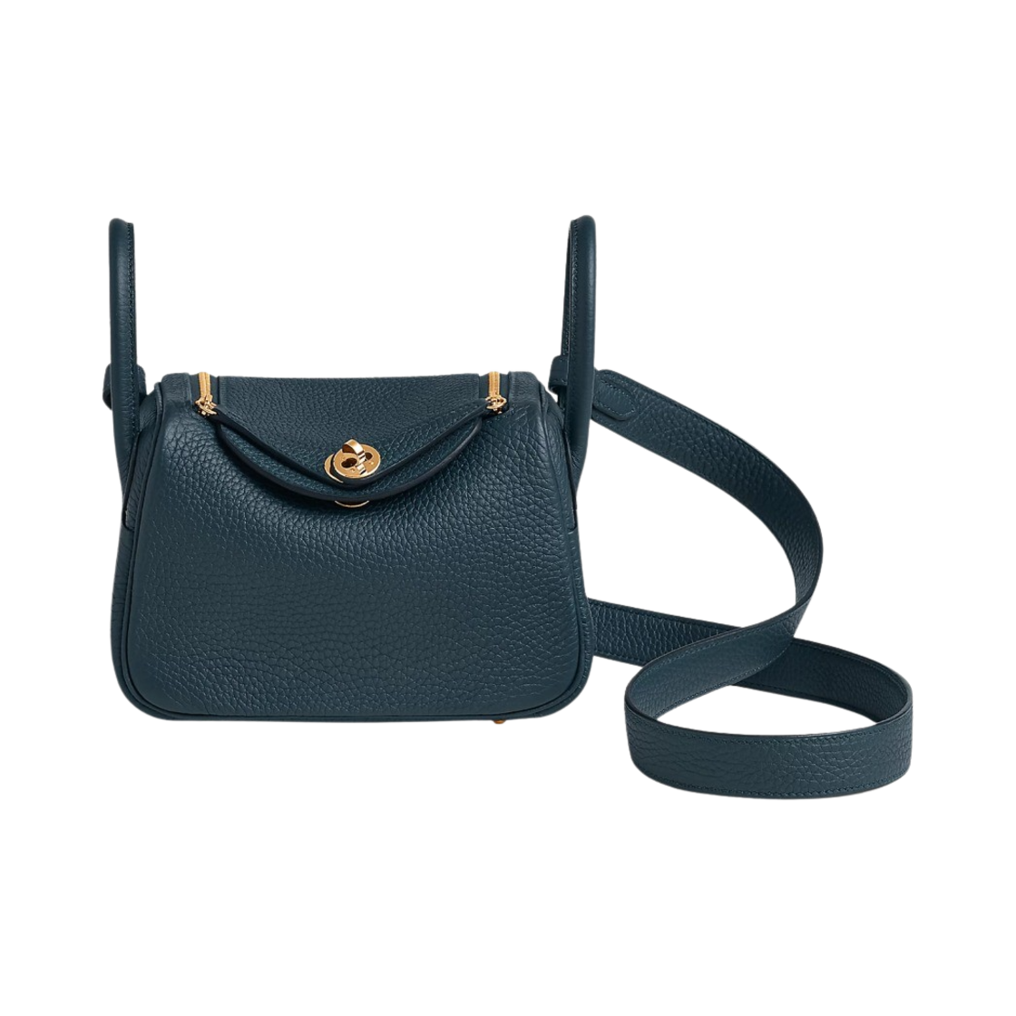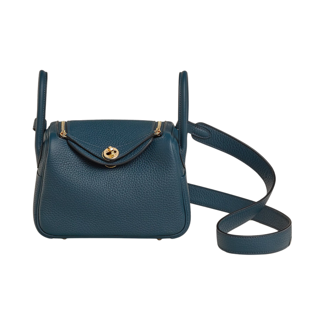 에르메스 린디 II 미니 백 클레망스 & 골드 하드웨어 블루 드 프뤼스