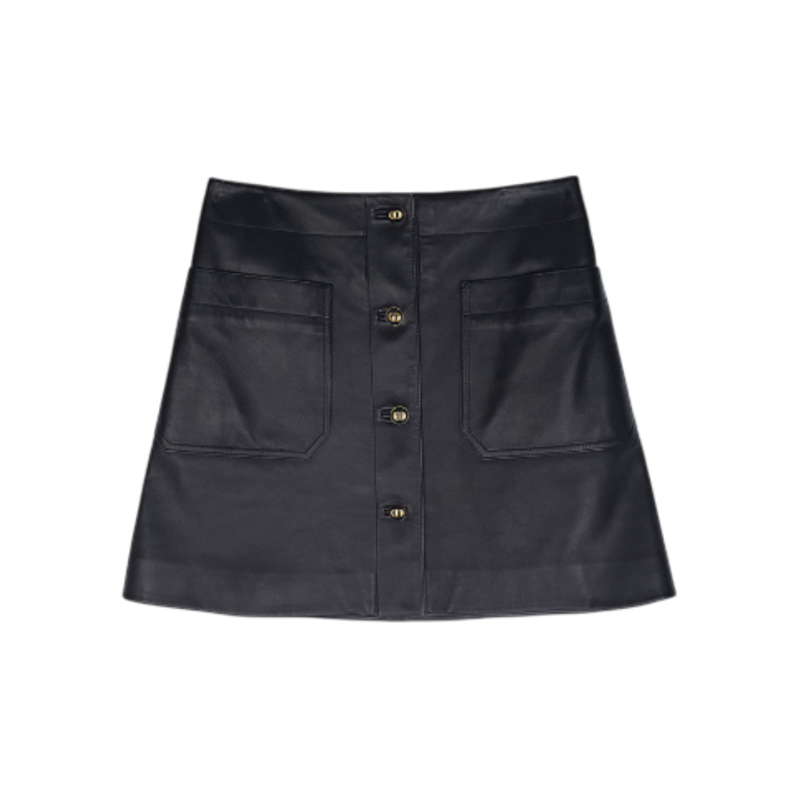 디올 레더 미니 랩 스커트 36 블랙 (5ET1602)