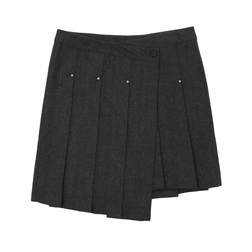 아수라 울 리벳 플리츠 랩 스커트 차콜