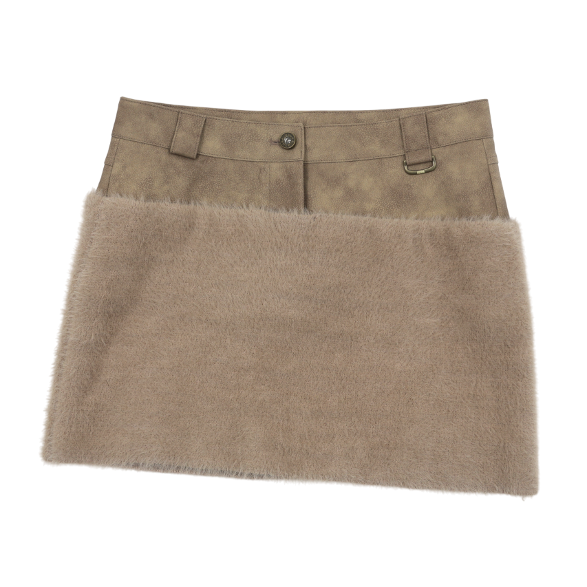 어글리쉐도우 러플 퍼 미니 스커트 아이보리