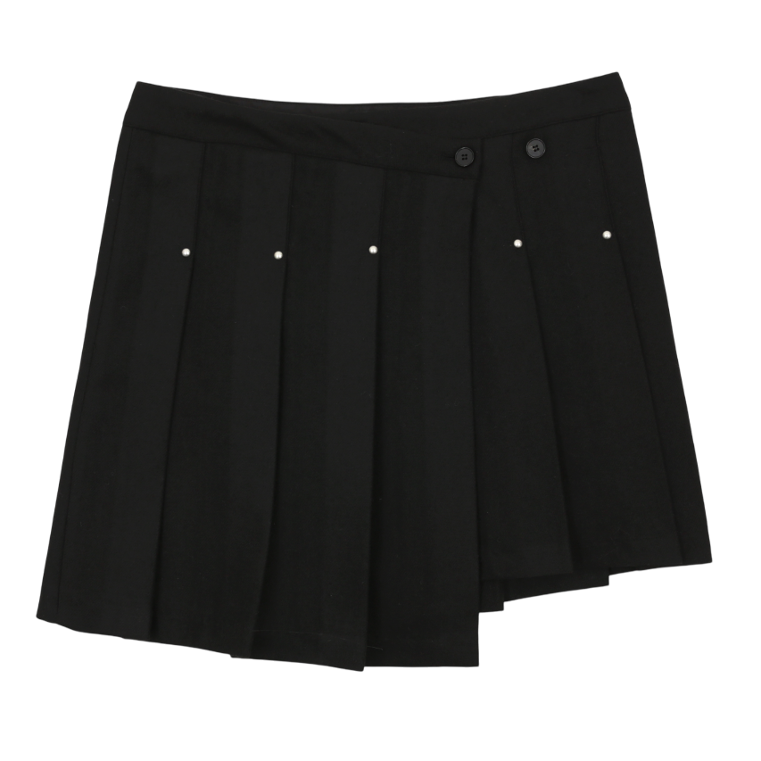 아수라 울 리벳 플리츠 랩 스커트 블랙