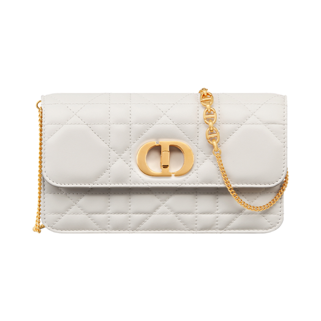 디올 스몰 미스 카로 파우치 체인 디올 오블리크 샴브레이 라피아 이펙트 앤드 스무스 카프스킨 라이트 비스킷 화이트