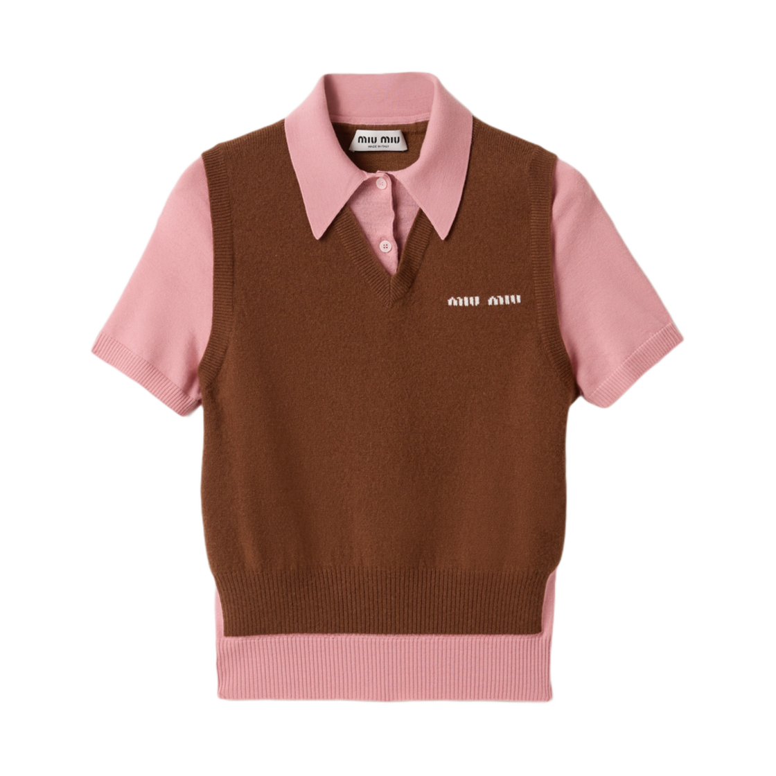 (W) 미우 미우 캐시미어 앤 울 폴로 스웨터 토바코 핑크