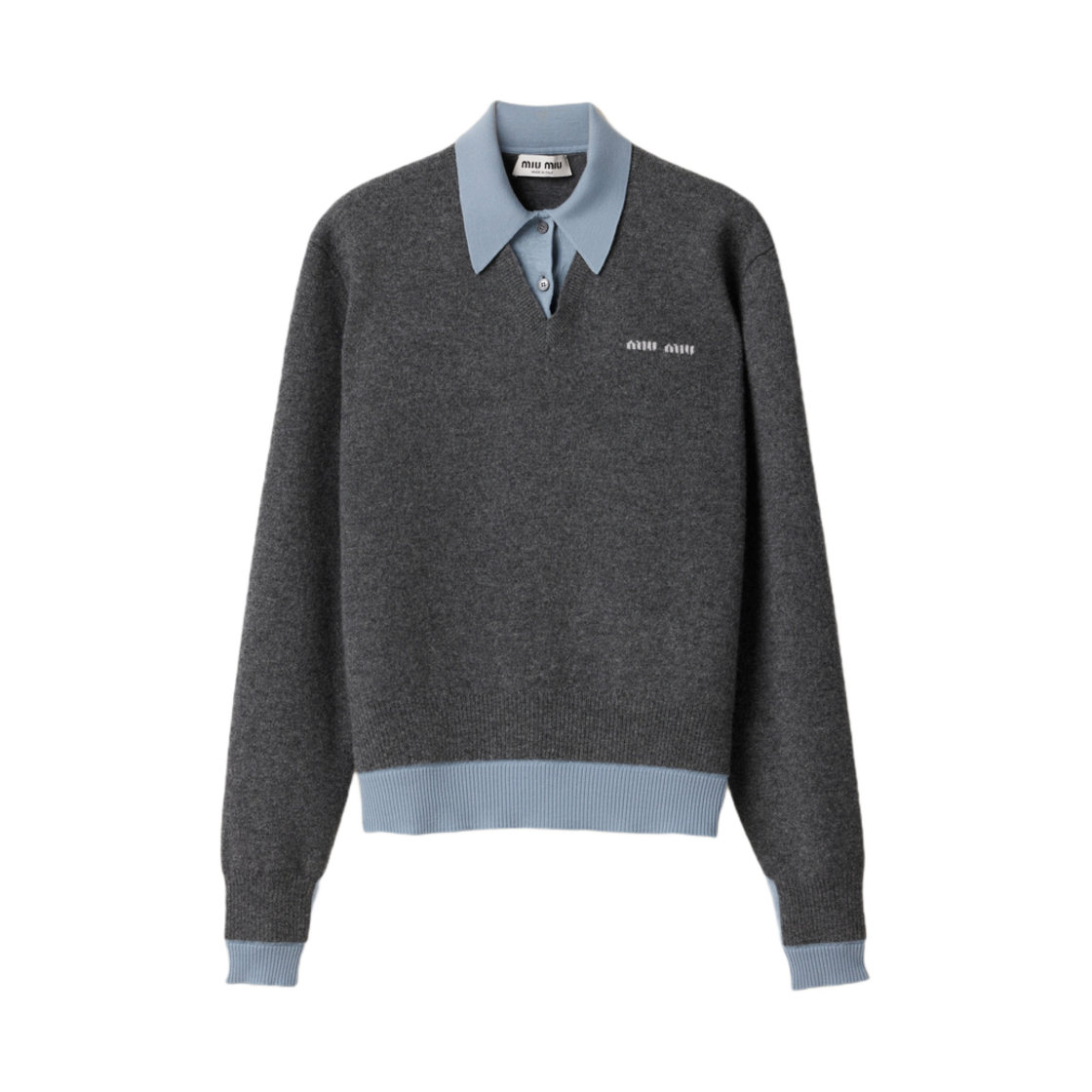 (W) 미우 미우 캐시미어 앤 울 폴로 스웨터 슬레이트 그레이 에비에이터 블루