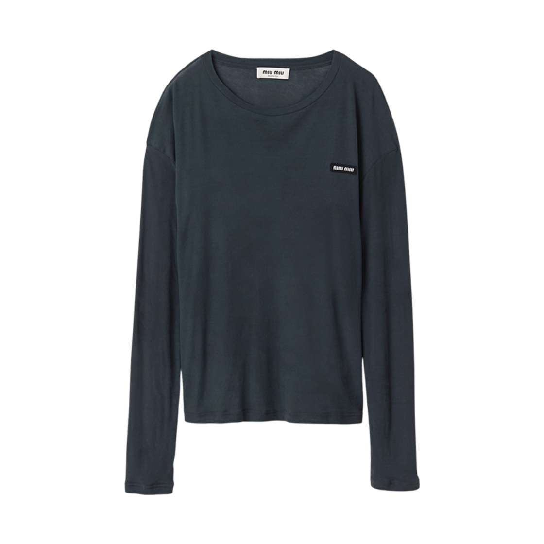 (W) 미우 미우 롱슬리브 가먼트 다이드 립드 니트 저지 티셔츠 블랙