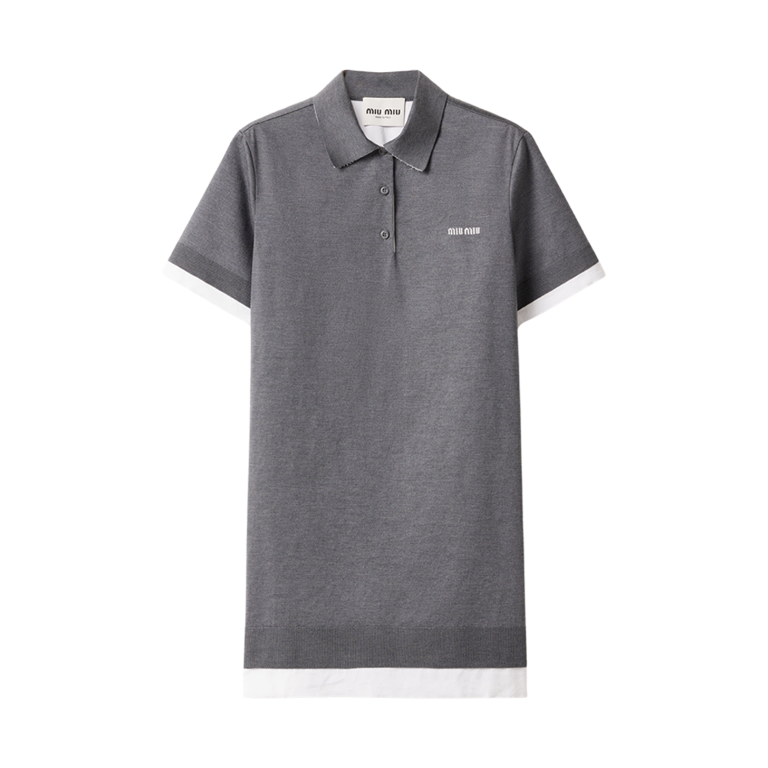 (W) 미우 미우 니트 앤 포플린 미니 드레스 슬레이트 그레이 화이트