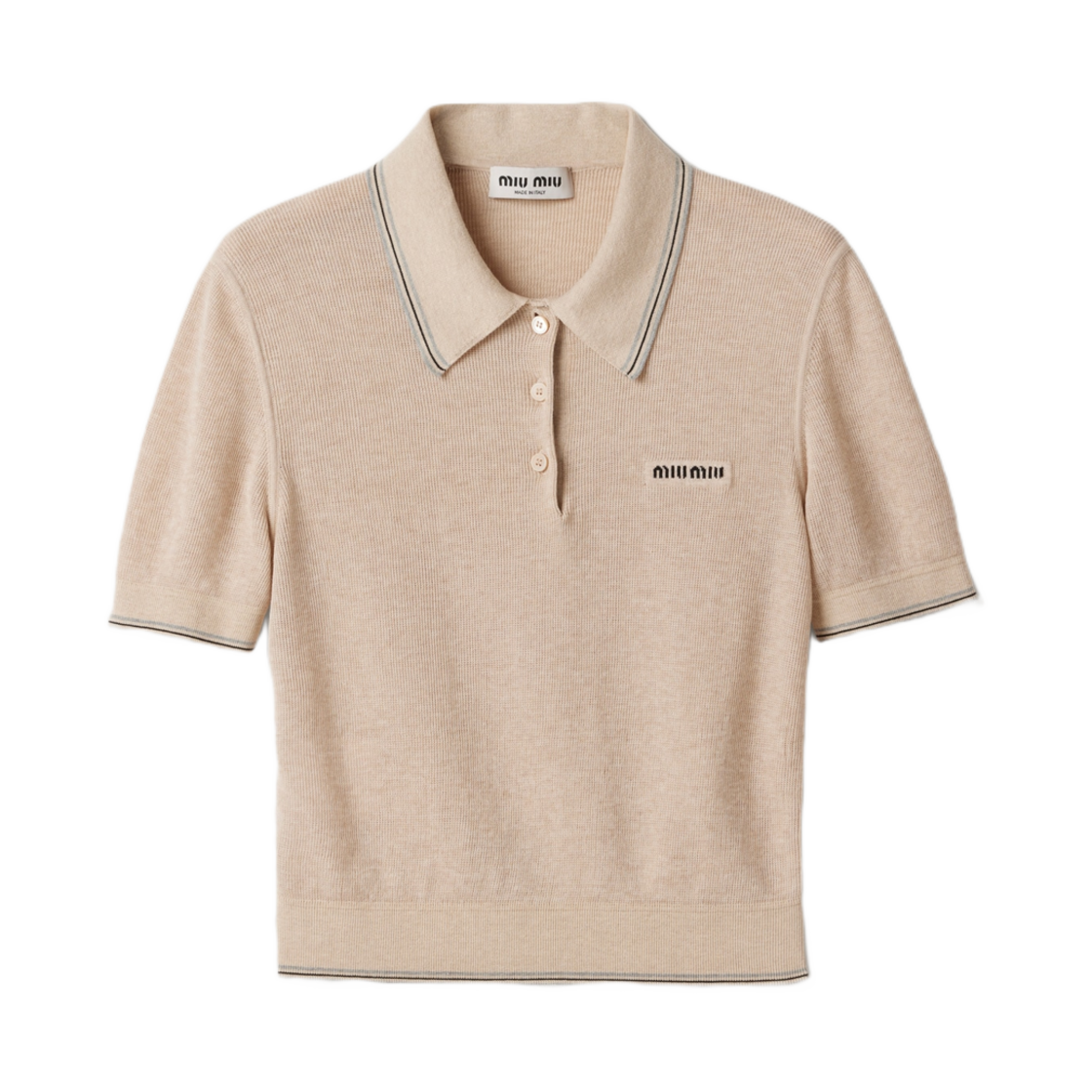 미우 미우 코튼 니트 폴로 셔츠 샌드 베이지