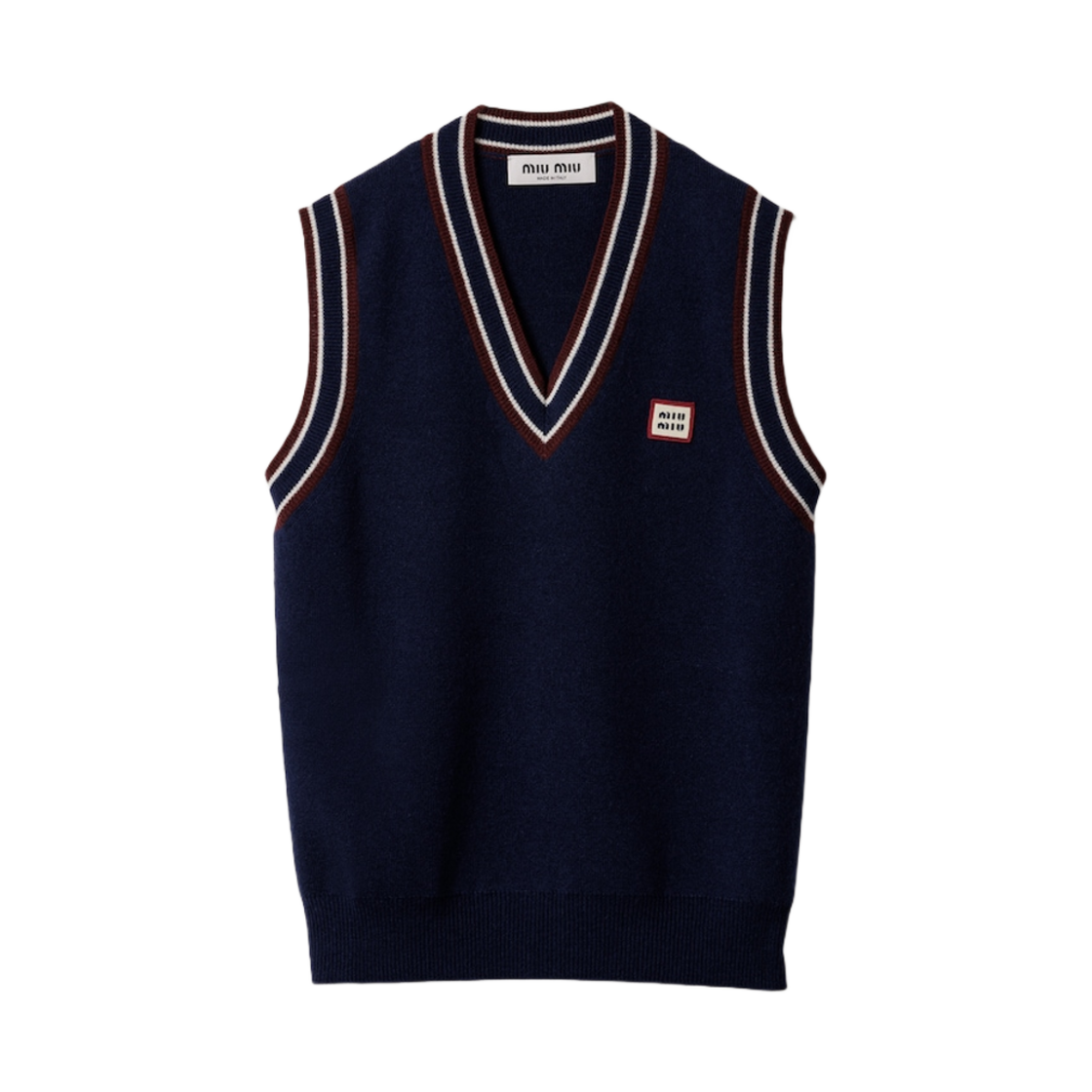 (W) 미우 미우 울 앤 캐시미어 니트 베스트 네이비